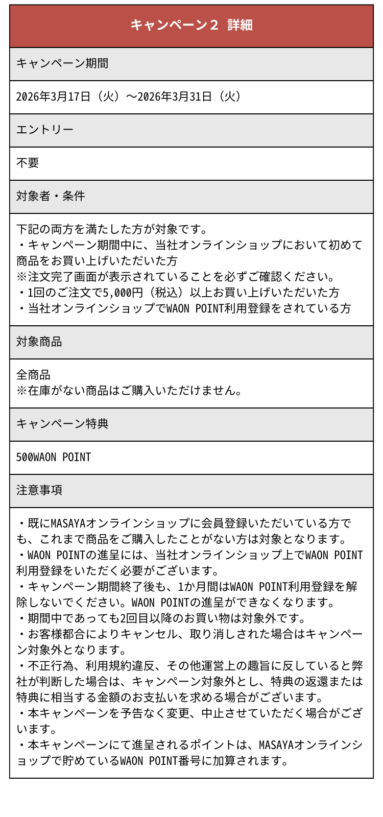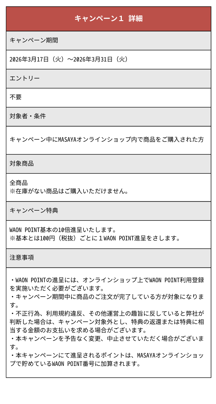 MASAYAオンラインショップ SPRING CAMPAIGN 2026