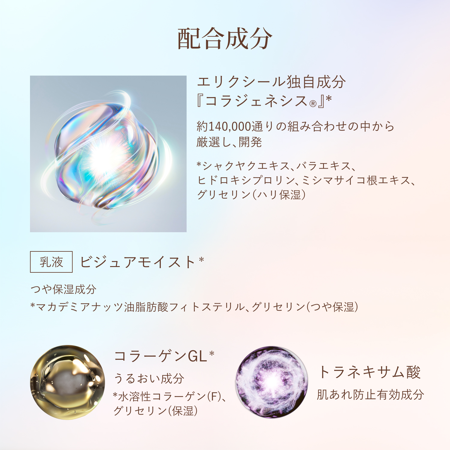 ●朝・夜の化粧水の後、手のひらに適量をとり、ていねいになじませます。 (使用量の目安)10円硬貨大