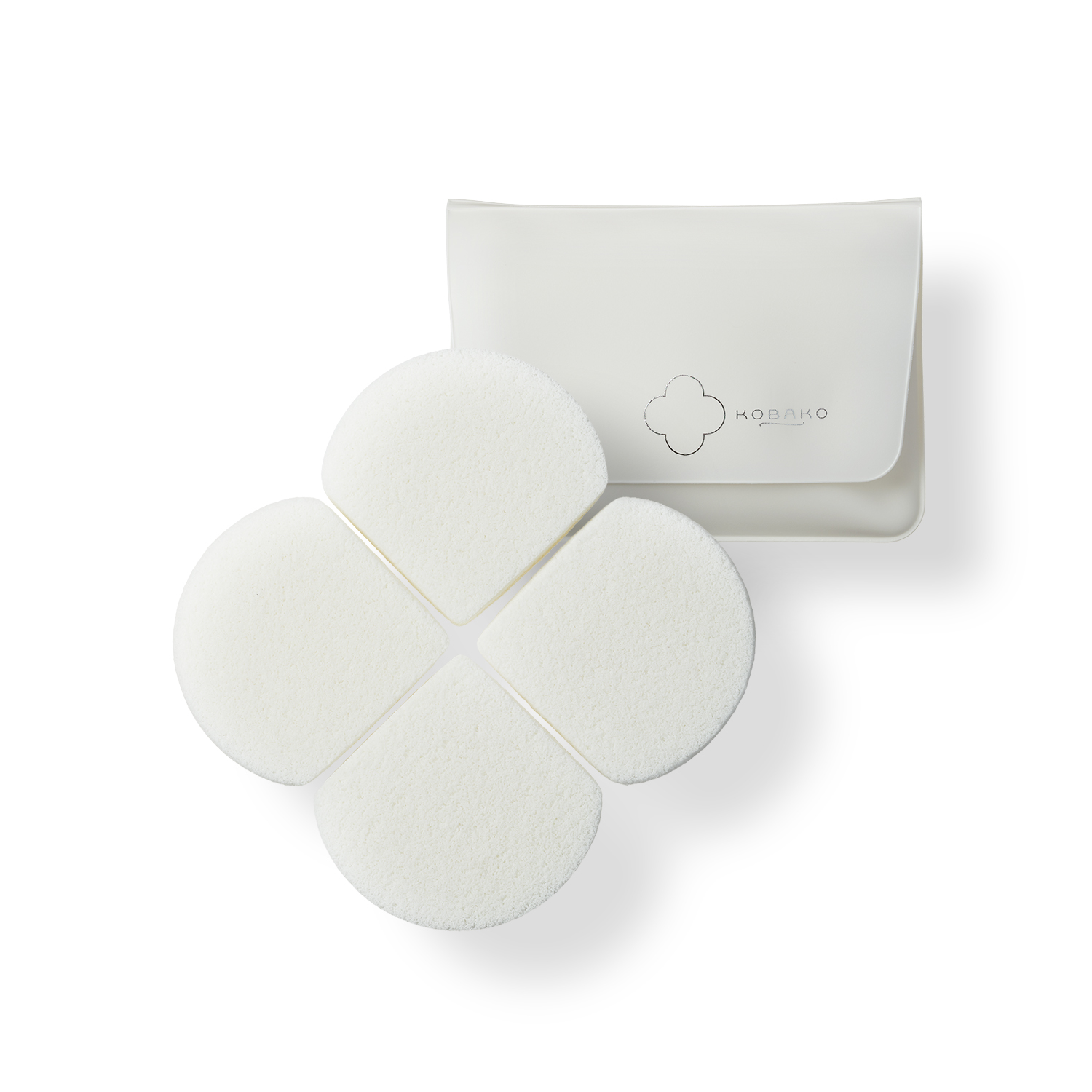 ファンデーションを顔にのせた後、スポンジの大きな面でパッティングしながらなじませていきます。