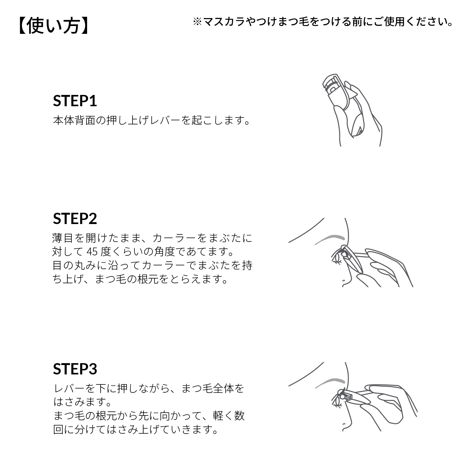 ・まつ毛をはさむ時は、力を入れ過ぎないでください。まつ毛が切れる、あるいは抜けることがあります。