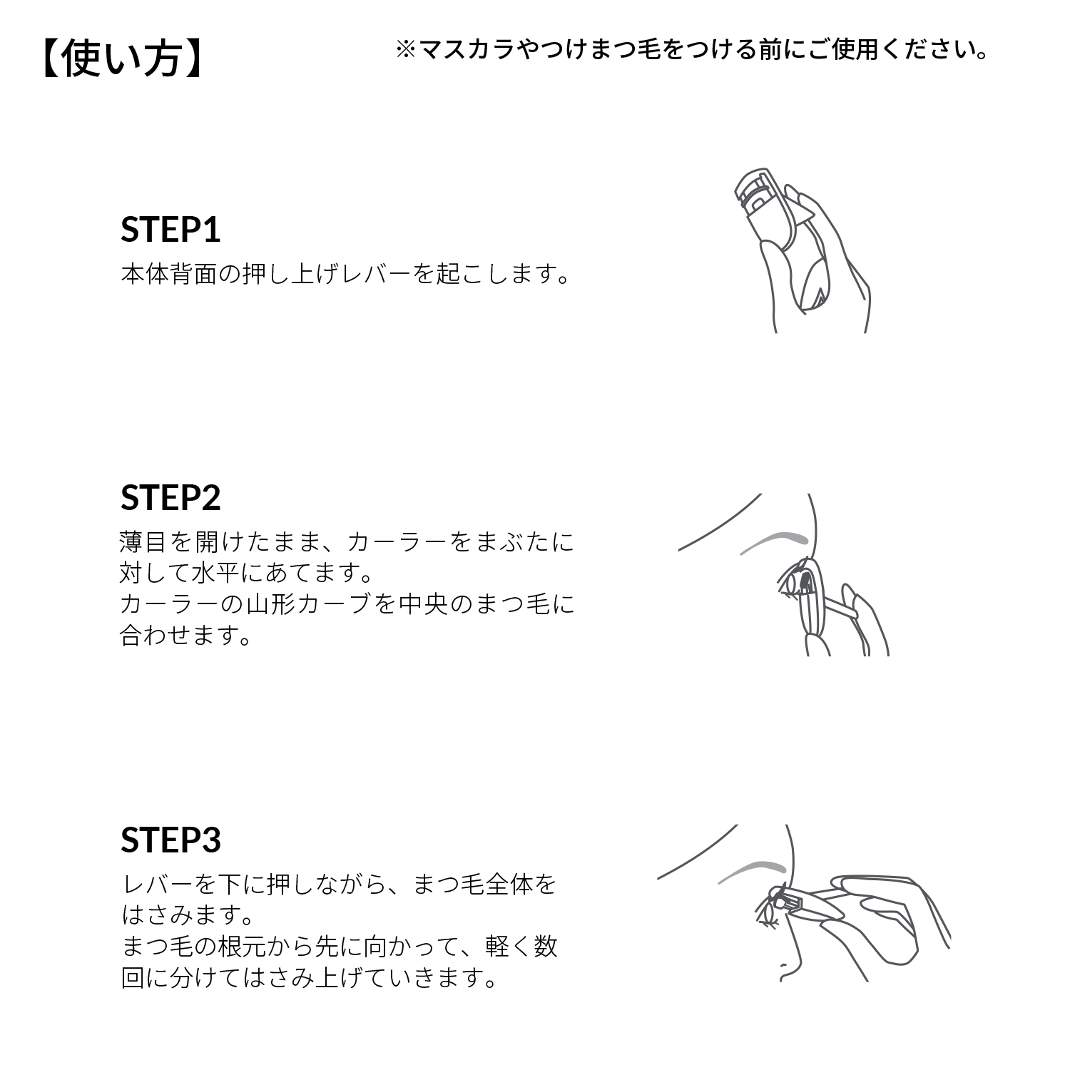 ・まつ毛をはさむ時は、力を入れ過ぎないでください。まつ毛が切れる、あるいは抜けることがあります。