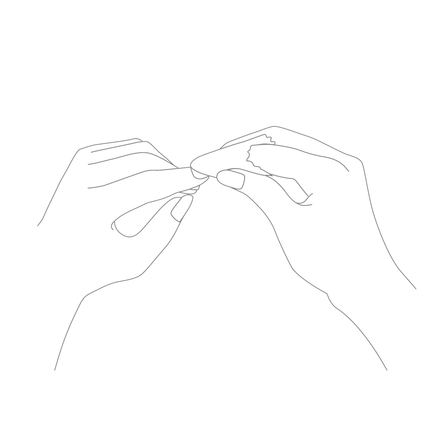 人さし指、もしくは親指に巻きつけ、キューティクルリムーバーをつけた爪表面のルースキューティクル(不要な角質)を絡めるようにこすり落とします。