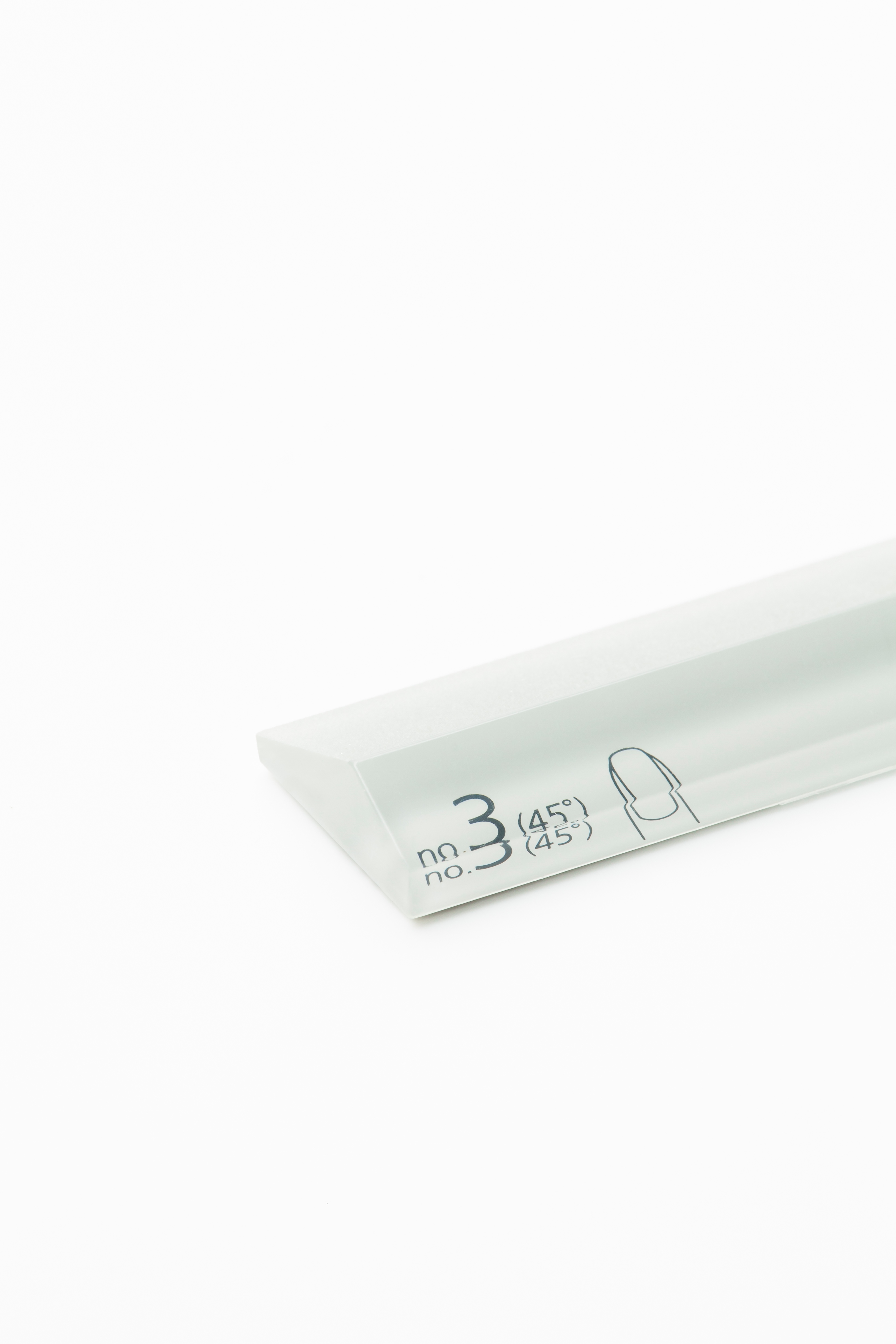 45度をキープし、ナチュラルで清潔感あるスクエアオフの爪に仕上げるタイプ。粗さは3段階で、3は細目。薄い爪や仕上げ用におすすめ。