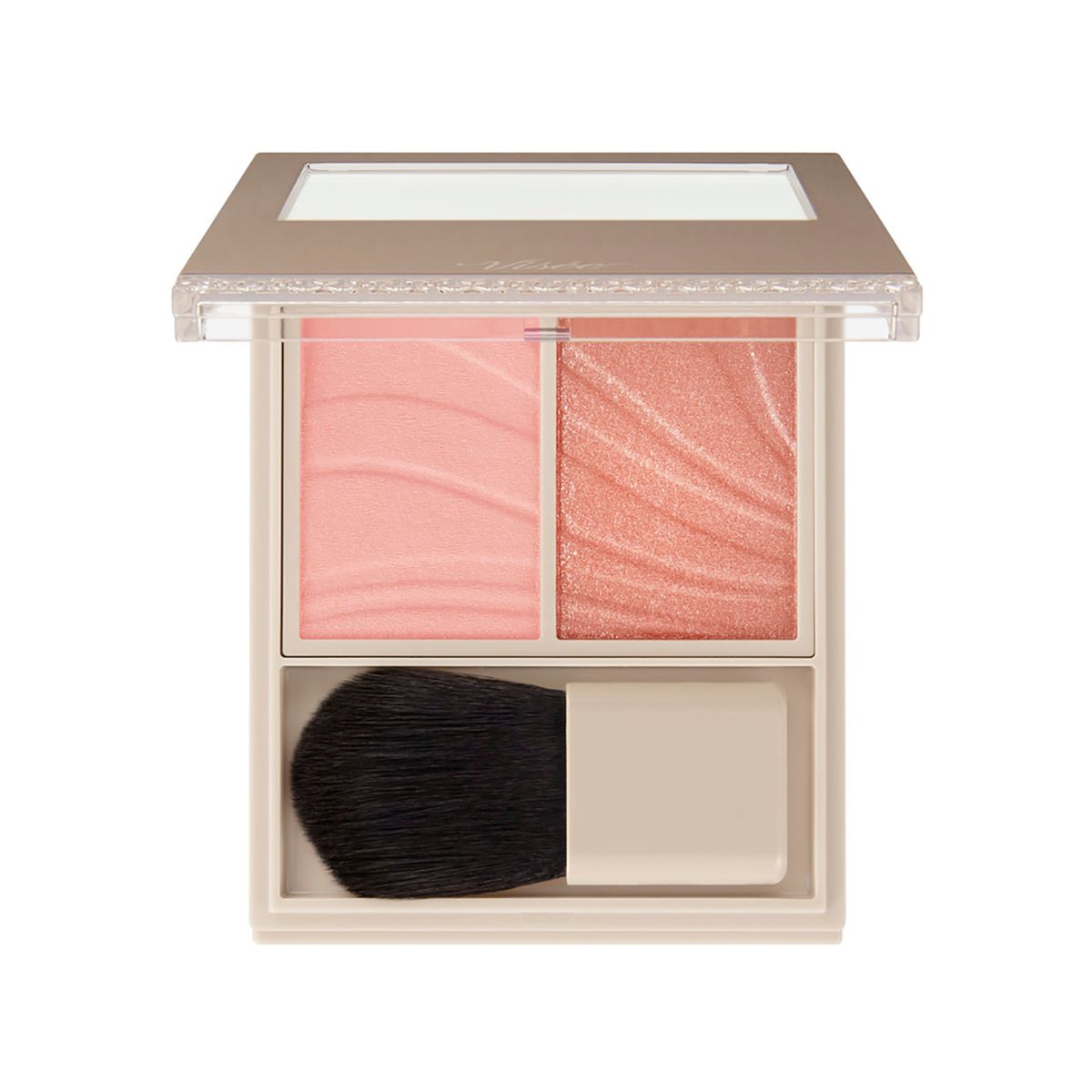 A、Bの順でお使いください。Aを指で頬全体にのせてから、Bをブラシに適量含ませ、手の甲で色のつき具合をみてから、血色感と立体感をあたえたい部分に重ねてください。Aはやわらかいスフレベースです。表面を一方向に軽くすべらせるようにやさしくおとりください。