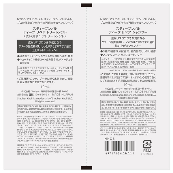 スティーブンノル ディープ リペア シャンプー : 髪と頭皮をぬらしてから、適量を手にとり泡立てて洗い、よくすすぐ。スティーブンノル ディープ リペア トリートメント : シャンプー後に軽く水気をきり、適量を髪全体になじませてからすすぐ。